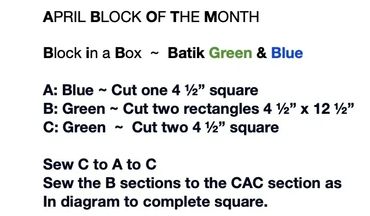 Each month the BOM committee, Sarah Galczynski & Linda Feutz, chooses a block for members to make. When you make the block and bring it to the next month's meeting, you will be in the drawing to be the winner of the blocks submitted!!